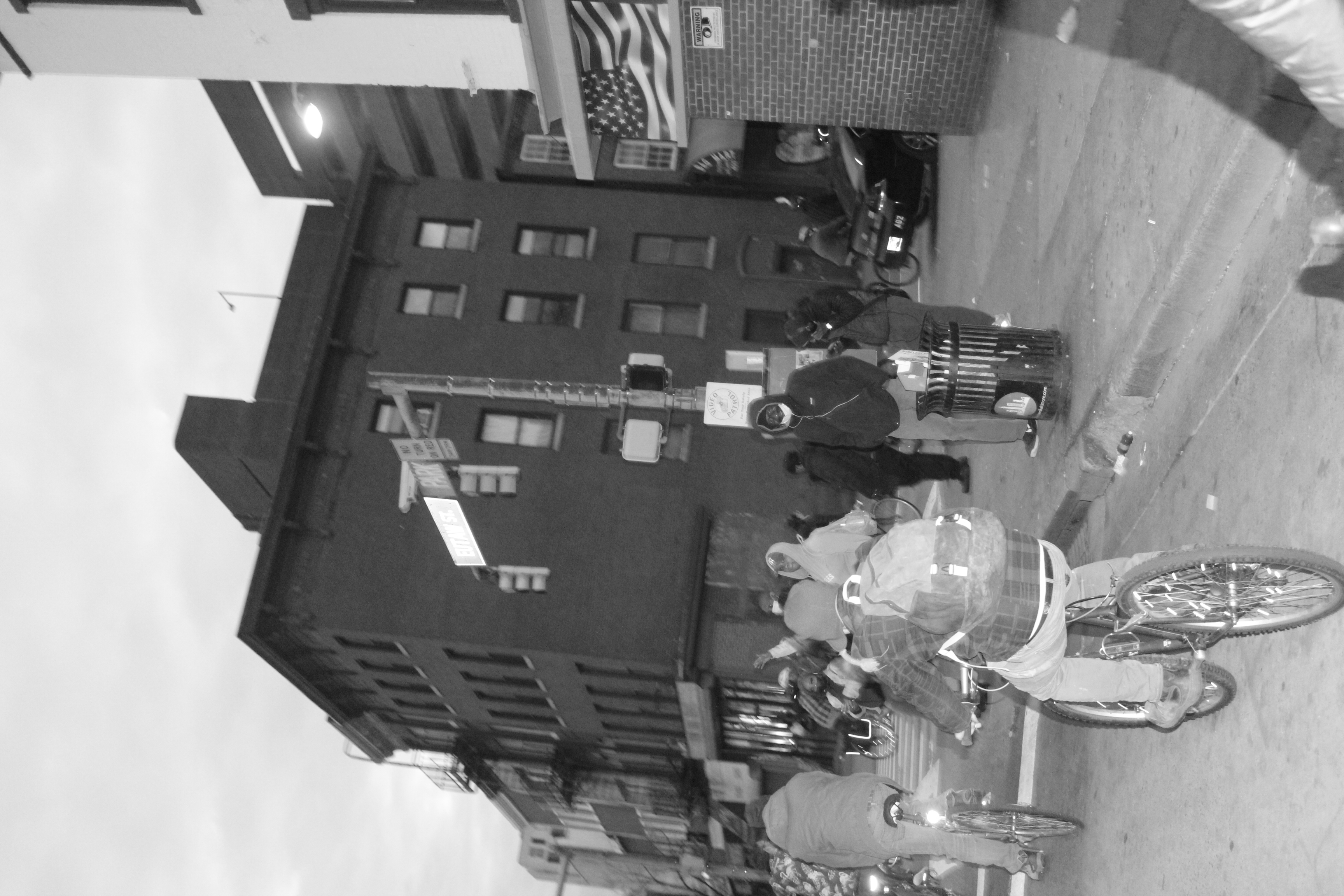 On- and off-bike photos of Baltimore’s monthly Bike Party, part tongue-in-cheek parade of offbeats and part guerilla pedestrian reclamation of Baltimore’s roadways from cars.